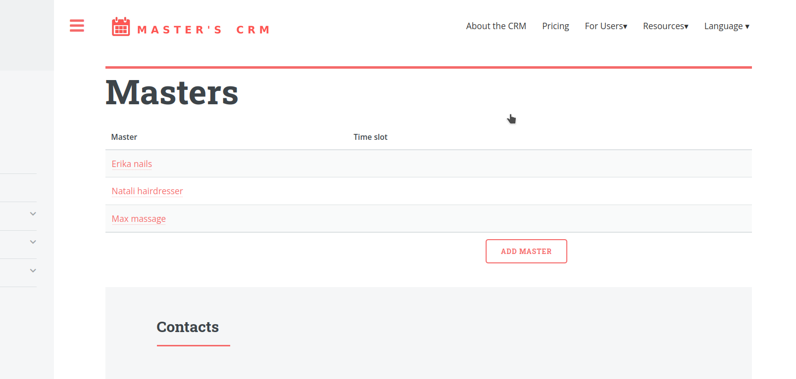 Add your team members and assign services to each of them. Every master can work on their own schedule and manage their appointments in a personal calendar.