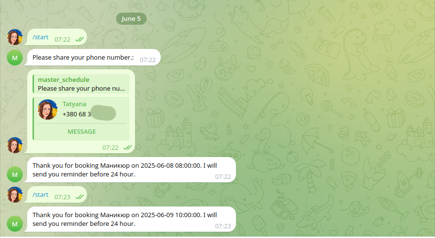 The system automatically sends messages to clients via messenger so they don’t forget their appointments.