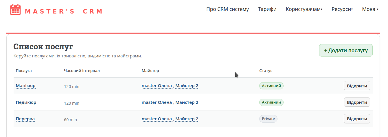 Pakalpojums ir konkrēts pieraksta veids, ko klients redz jūsu lapā.