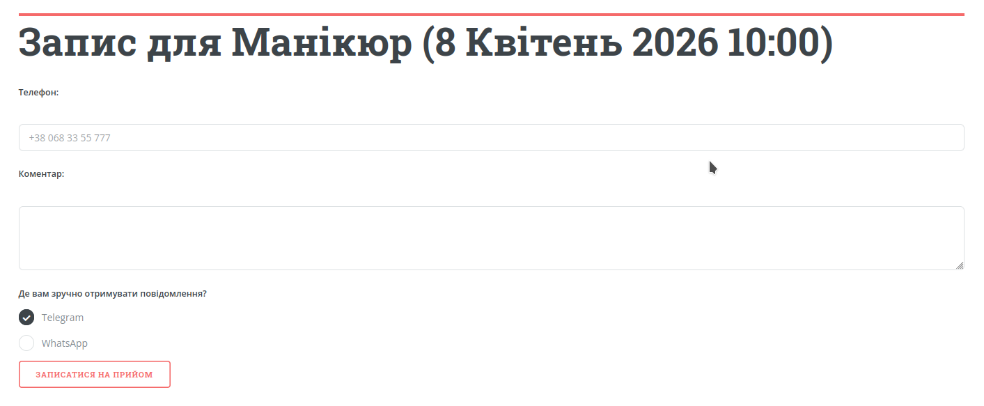 Klient przechodzi pod Twój link i widzi stronę z usługami, opisem i dostępnymi terminami.